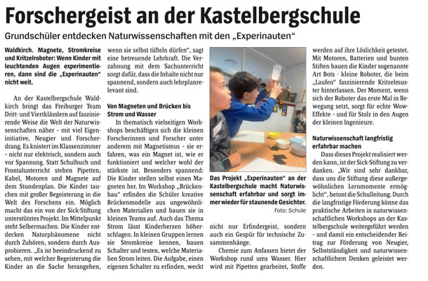 Wir möchten MINT-Bildung nachhaltig gestalten. Dazu gehen wir an ausgewählte Grundschulen und begleiten in unserem Projekt Experinauten machen Schule und Experinauten machen Schule - Grüne Köpfe die vierte Klassenstufe mit am Bildungsplan orientierten Workshops im MINT-Bereich. Bildung für nachhaltige Entwicklung gibt dabei den Rahmen unseres Projektes vor.